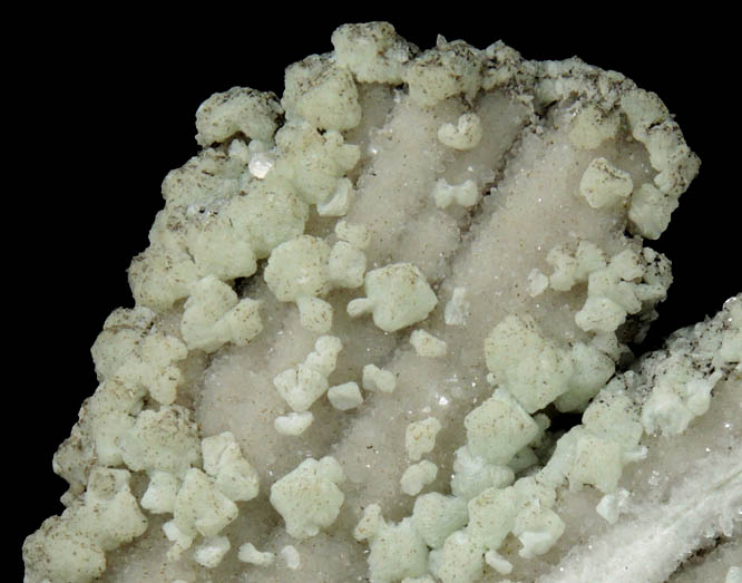 | AllMinerals/JohnBetts-FineMinerals > Online Mineral Museum Photographic Archive > Minerals from New Jersey > Prehnite on Quartz pseudomorphs after Anhydrite |