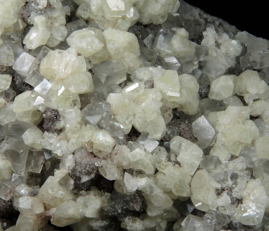 | Description: | Lustrous transparent-to-translucent green datolite crystals to 8 mm with transparent colorless rhombohedral calcite crystals to 10 mm on basalt coated with small gray quartz crystals to 1 mm (only exposed in a few areas). Ex. St. Lawrence University Collection; ex. Howard E. Moore (1926-2011) |