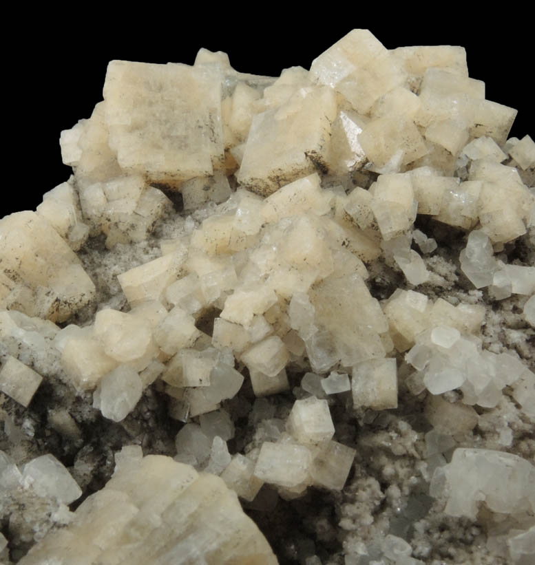 | Description: | Rich cluster of many lustrous translucent beige-colored rhombohedral chabazite crystals to 11 mm over transparent colorless calcite crystals to 3 mm with waxy surface luster covering one face of gray basalt. Ex. St. Lawrence University Collection; ex. Howard E. Moore (1926-2011) |