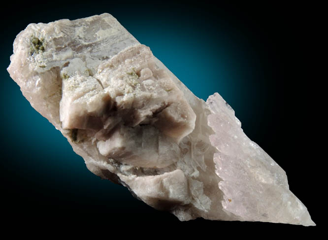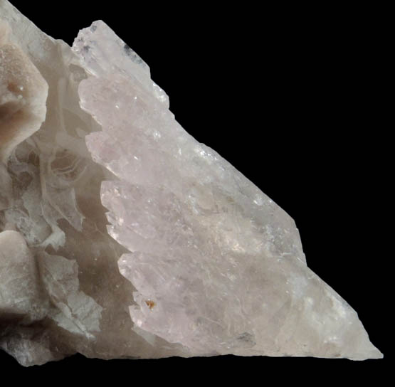 | Description: | Lustrous transparent pink rose quartz crystals in parallel orientation on one end of translucent gray quartz with albite. Rose quartz crystals are uncommon, and occur at few places in the world. This came from a pocket excavated a few years ago. |