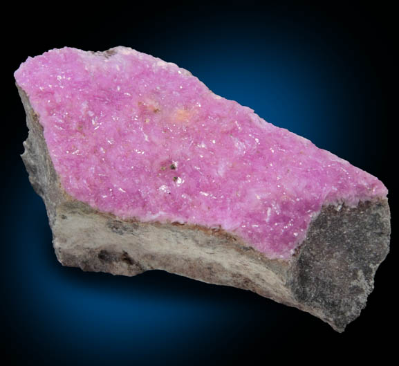| Description: | Sparkling vivid pink-violet cobalt-rich dolomite crystals to 2 mm completely covering one face of gray matrix. The pink color of the dolomite is caused by the cobalt impurities. These dolomite specimens are commonly mislabeled as Cobaltoan Calcite. |