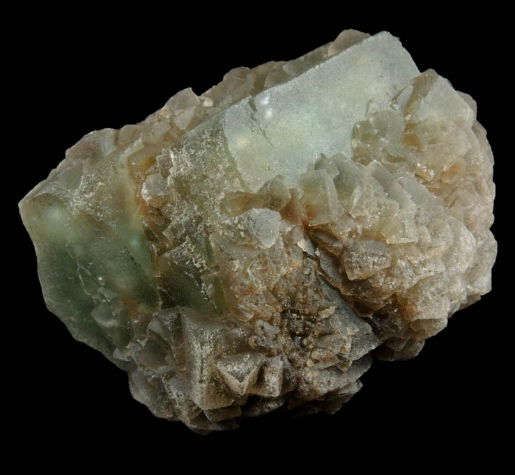 | Description: | Translucent greenish-gray cubic fluorite crystals to 6 mm in a hemispherical cluster 35 mm across overgrown on an earlier generation of transparent green fluorite crystals to 21 mm. The fluorite crystals have etched crystal faces causing matte luster. Collected ca. 1985-90 |