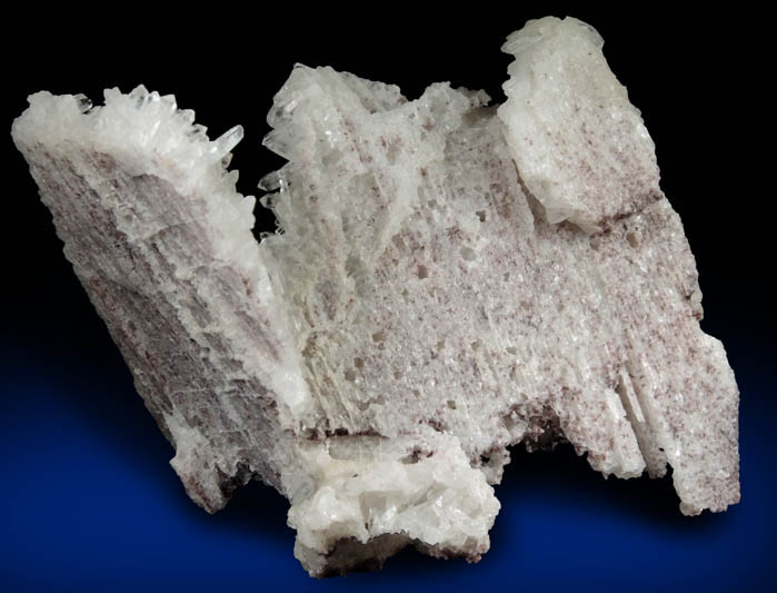 | Description: | Lustrous transparent colorless quartz crystals to 11 mm lining the surfaces of pseudomorphic casts after a bladed mineral, possibly barite. That mineral formed first, was overgrown with quartz, when it dissolved it left impressions of flat crystal faces. Ex. D. Miller collection #M133 |