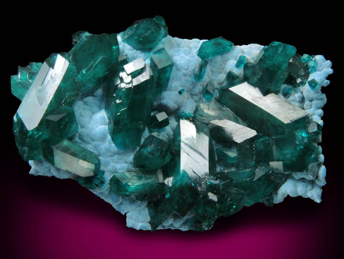 | AllMinerals/JohnBetts-FineMinerals > Online Mineral Museum Photographic Archive > Minerals from Namibia > Dioptase on Plancheite |