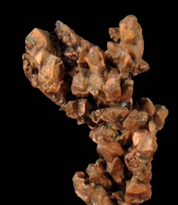 | Description: | Sharp, well defined crystals of native copper (naturally occurring copper) in a vertical formation of interconnected crystals. |