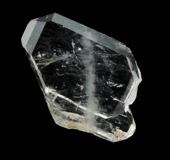 | Description: | Lustrous transparent colorless quartz crystals exhibiting the classic Faden Habit of tabular crystals that grew outward from a central microcrystalline white spine that is visible running through the center. Ex. Mort Metersky collection |
