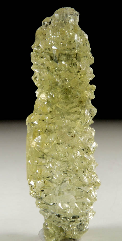 | Description: | Transparent (flawless) crystal of greenish-yellow heliodor, the yellow gem variety of beryl, with no matrix attached. The crystal has complexly crystallized surfaces, often mistakenly labeled as etched, but actually the result of unusual crystallization. Collected ca. 2006. Weight: 8.3 grams |