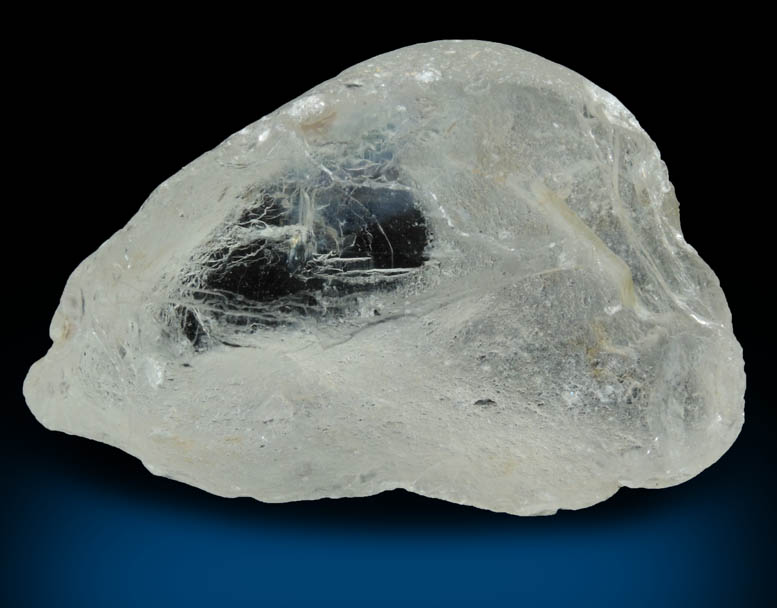 | Description: | Transparent gem-grade colorless topaz crystal with rounded, rough surfaces caused by alluvial wear. Two flat cleavage faces reveal the topaz to be water-clear inside and is suitable to faceting into gemstones. Ex. D. Miller collection #M2185; originally acquired in 1970. Weight: 93.3 grams |