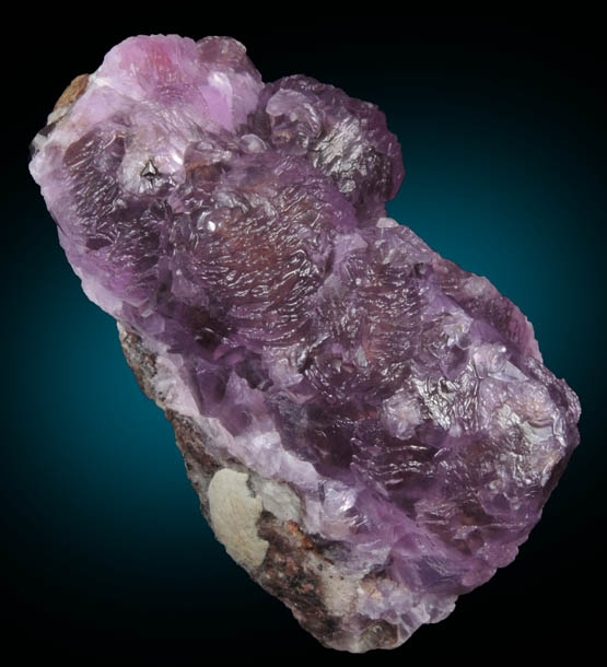 | Description: | Double-sided specimen of lustrous transparent pinkish-purple cobalt-rich dolomite crystals covering the front, top edge, and rear of brown matrix. The dolomite crystals are rhombohedral form in rounded aggregates to 14 mm diameter. Ex. D. Miller collection #2089 |