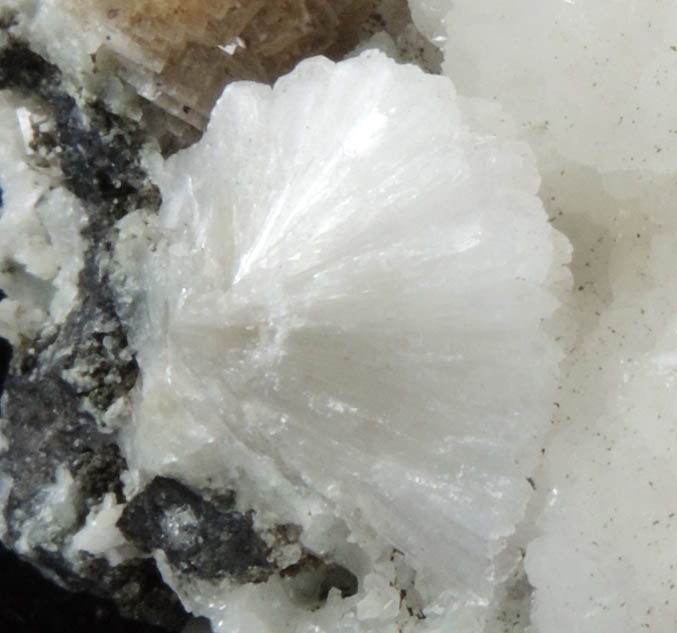 | Description: | Lustrous translucent white bladed stilbite crystals in hemispherical formation 15 mm diameter with lustrous translucent brown heulandite crystals to 8 mm Collected by Kurt Hennig |