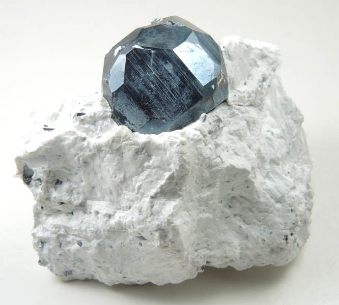 | Description: | Lustrous gray-metallic pyrite crystal in contrasting white clay-rich matrix. The gray color is caused by a coating of chalcocite. The pyrite crystal exhibits complex form with many different secondary faces. Collected in 2015. Analysis of coating performed from Ben Grguric at South Australian Museum |
