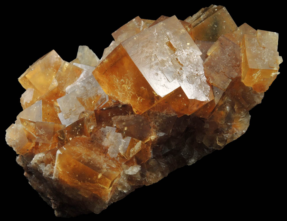 | Description: | Superb large crystals of transparent amber-colored cubic fluorite crystals with lustrous crystal faces that have complex crystallization patterns. From the private collection of John Lawson (1942-2024) and Robert Lawson, collected in 2003 |