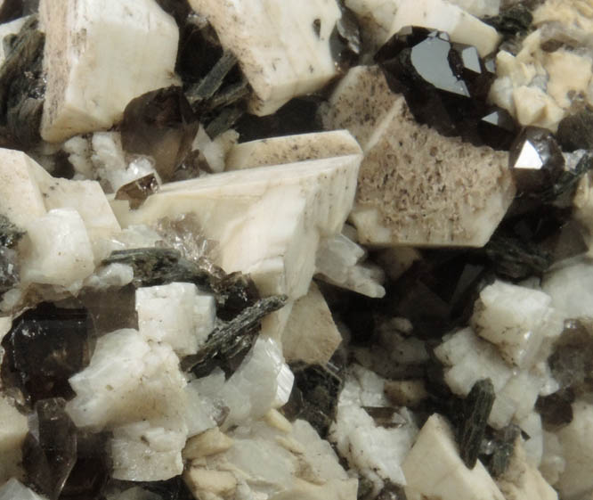 | AllMinerals/JohnBetts-FineMinerals > Online Mineral Museum Photographic Archive > Minerals from Ireland > Microcline, Smoky Quartz, Muscovite |