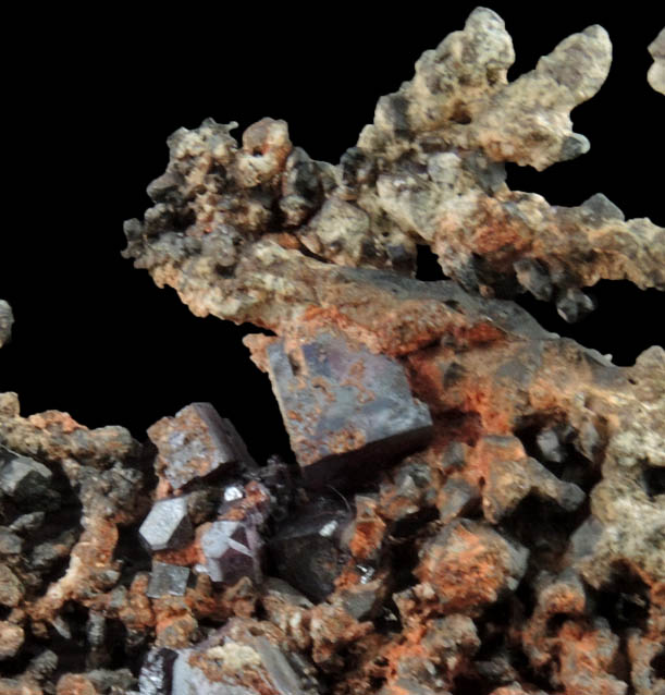 | Description: | Large (for this locality) translucent red cubic cuprite crystals to 7 mm on crystallized native copper crystals (naturally occurring copper crystals) in dendritic formations that formed in narrow fractures in the rock. Ex. Irving Horowitz collection #586b |