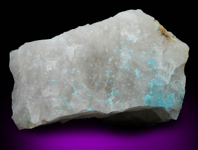 | Description: | Sparkling blue turquoise microcrystals scattered in patches one face of milky quartz. The turquoise crystals are rare, and look beautiful under magnification: transparent, lustrous with many distinct individual crystals visible. |
