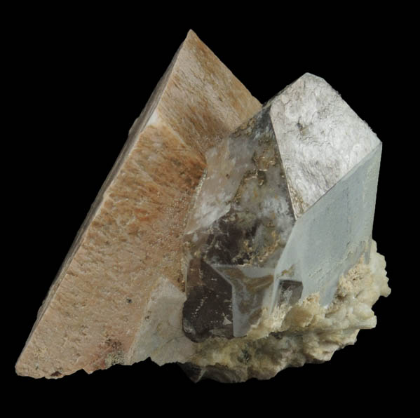 | Description: | Large 48 mm tan-colored microcline crystal with translucent gray smoky quartz crystals to 25 mm in parallel orientation on one side. Ex. Thomas A. Penney (1934-2019) collection, collected in the 1960s-70s |