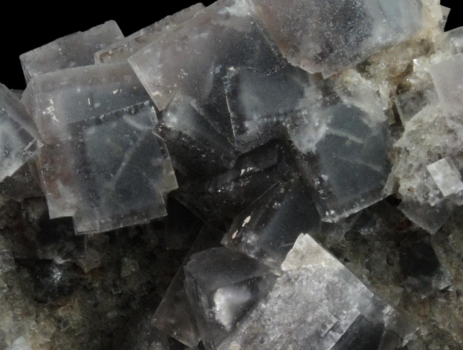 | Description: | Elongated cluster of lustrous transparent cubic fluorite crystals covering a spine of crystalline fluorite. The fluorite crystals are pale-gray with medium-gray internal phantom-growth zones. The fluorite crystal faces have slightly waxy luster. Ex. Martin Jensen collection #MJ0502 |