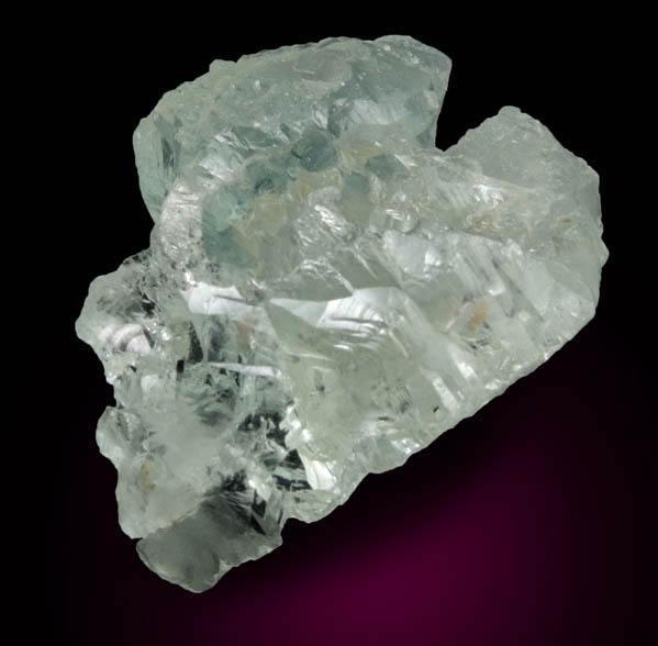 | Description: | Gem-grade green aquamarine crystal, the gem variety of blue-green beryl, with complex exterior surfaces caused by severe etching by solutions within the cavity that partially dissolved the aquamarine following the crystal structure. Weight: 14.8 grams |