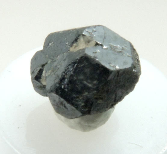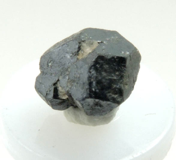 | Description: | Lustrous black uraninite crystal with no matrix attached mounted in an acrylic Perky-style display box for easy handling. The uraninite crystals is flattened cubo-octahedral form with brown remnants of matrix on one face. Collected ca. 1996. Radioactive |
