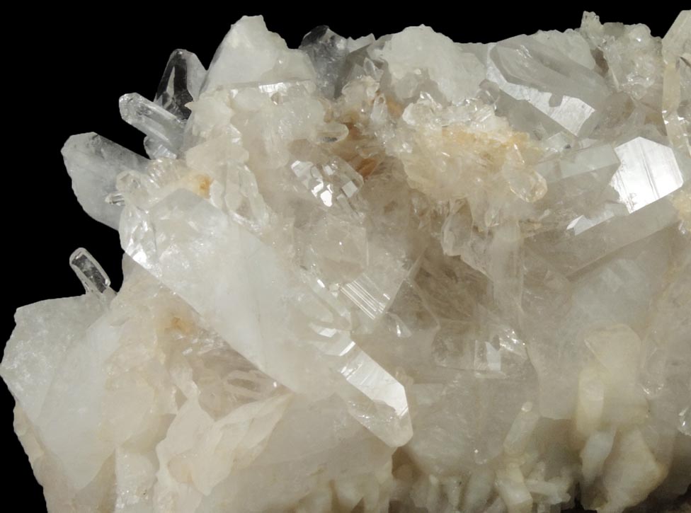 | Description: | Elongated cluster of lustrous transparent-to-translucent colorless quartz crystals over an earlier generation of milky quartz. These quartz crystals were collected in a one-time find that is not easily accessible. Collected ca. 1980 |