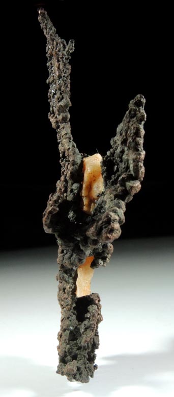 | Description: | Arborescent formation of sharp, well defined native copper crystals (naturally occurring copper crystals) with remnants of yellow calcite. The copper was enclosed in the calcite which was dissolved to expose the copper, leaving calcite in crevices. Collected ca. 1950 |