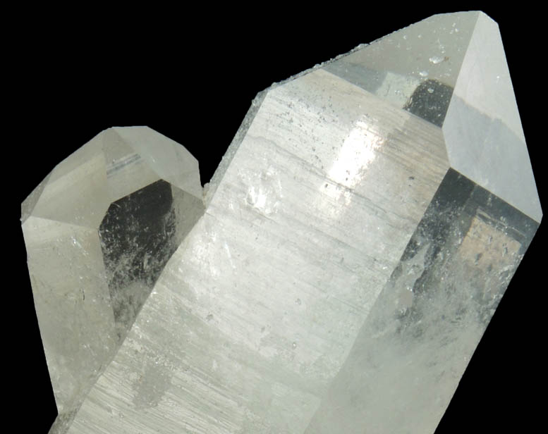 | Description: | Two intersecting lustrous transparent-to-translucent colorless quartz crystals with microscopic quartz crystals scattered over the termination faces. Ex. Robert C. Linck (1905-1970) |