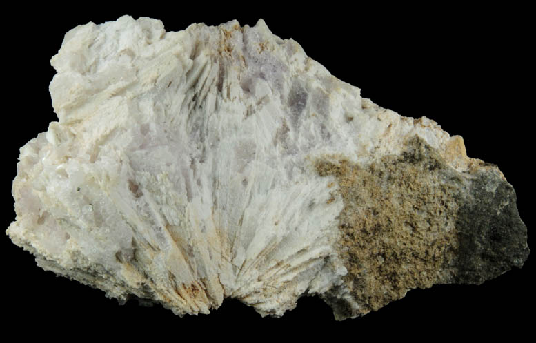 | Description: | White pseudomorphs after fan-shaped bladed anhydrite crystals to 25 mm with transparent purple amethyst in the voids. Anhydrite formed first, was coated with white quartz, the anhydrite dissolved and amethyst formed in the molds. Ex. St. Lawrence University Collection; ex. Howard E. Moore (1926-2011); collected ca. 1950 |