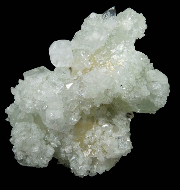 | Description: | Plate of translucent green prehnite crystals coated front and rear with lustrous transparent colorless apophyllite crystals to 4 mm. From my personal collection #571; collected ca. 1989 |