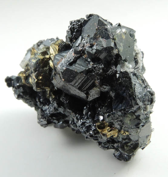 | Description: | Sparkling cluster of lustrous black tetrahedral sphalerite crystals to 5 mm intermixed with brassy yellow-metallic chalcopyrite crystals to 2 mm. Ex. W. Frech (1913-1998) |