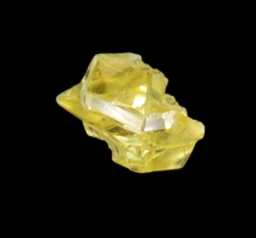 | Description: | Lustrous transparent natural uncut diamond with fancy-yellow color and excellent sparkle caused by the rare cavernous crystal form (depressed convex faces with prominent edges). |