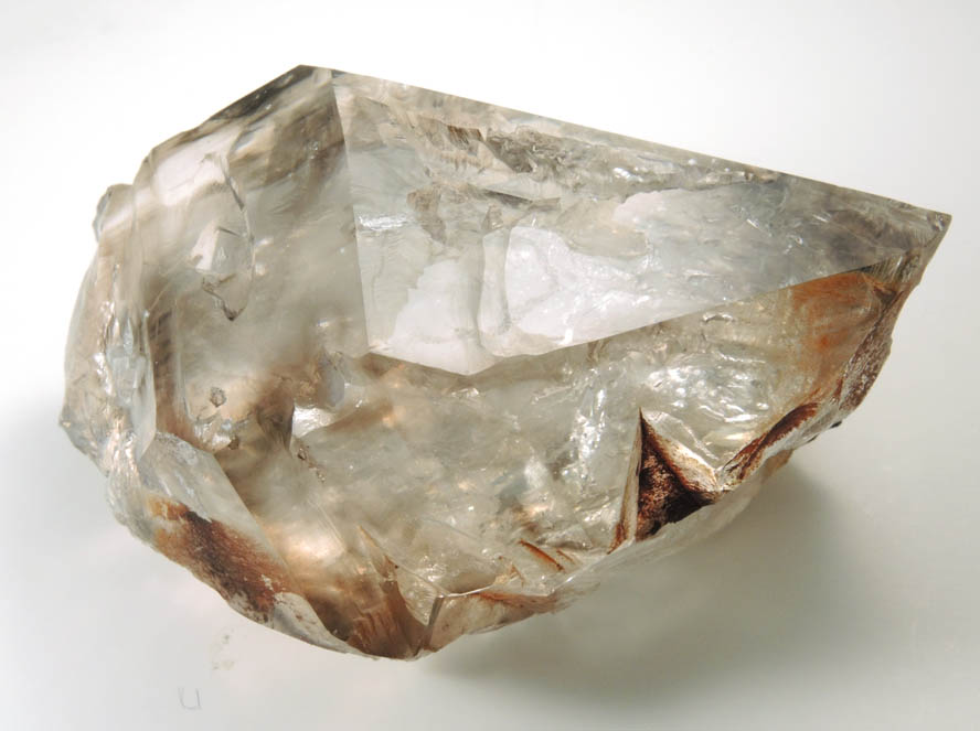 | Description: | Large single lustrous doubly-terminated transparent smoky quartz crystal with contacts on the bottom where it was attached. The smoky quartz crystal has medium color with darker zones on the edges and skeletal crystal faces. From the collection of Frank C. Perham (1934-2023), namesake of the mineral species Perhamite |