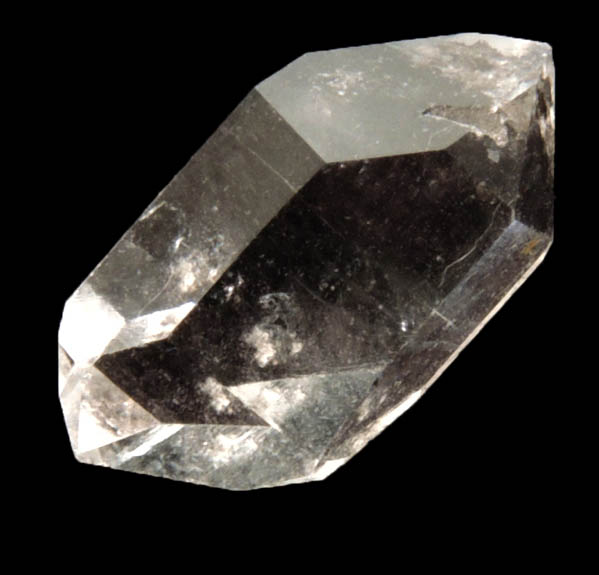 | Description: | Lustrous transparent Herkimer Diamond crystal, the doubly-terminated variety of quartz from the Herkimer region, with scattered black hydrocarbon inclusions. From my personal collection; collected ca. 1992 |