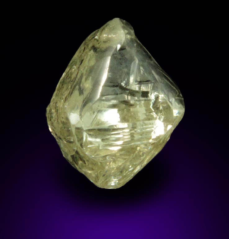 | Description: | Superb gem-grade cuttable yellow uncut diamond with complex crystal form, a combination of many dodecahedral and octahedral faces. The diamond has glassy crystal faces with excellent sparkle and is internally clean (VVS1 grade or better). Fluoresces violet-white under 365 nm LW UV illumination |