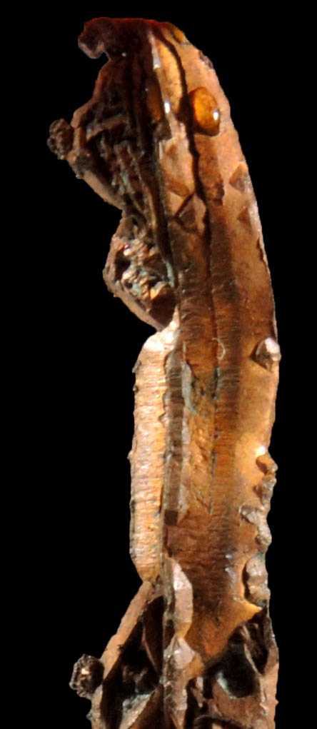 | Mineral: | Copper (elongated Spinel-Law twinned native copper crystals) |