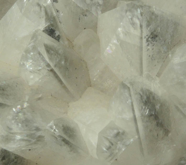 | Description: | Lustrous transparent-to-translucent colorless scalenohedral calcite crystals with gray phantom-growth zones composed of microscopic crystals of pyrite and other sulfide minerals. Ex. Jeff Fast ca. 1990 |