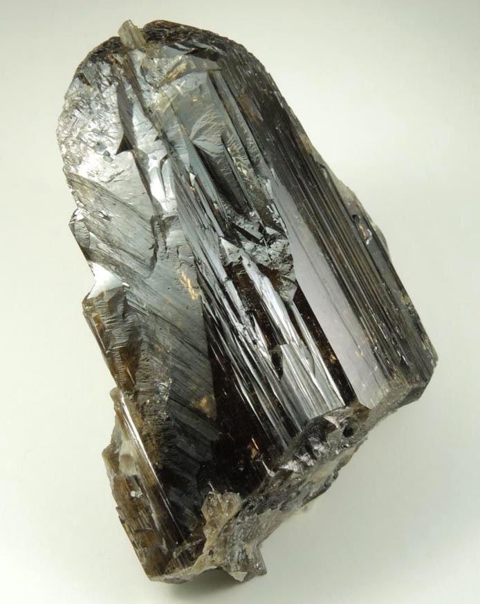 | Description: | Unusually large transparent green-brown epidote crystals with striated prism faces and complex terminations (not the typical feather-like thin formations). The epidote crystals are contact-twinned on the {100} plane running through the middle. Collected ca. 1995 |