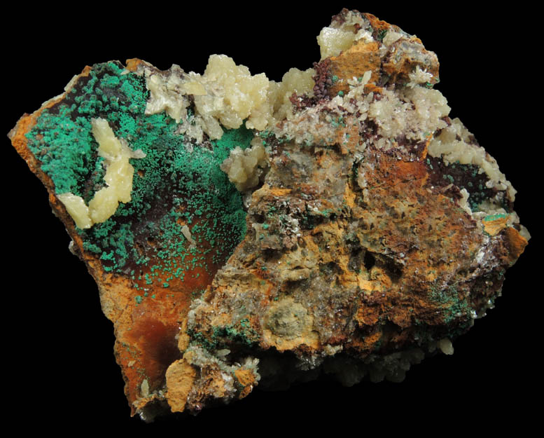 Mimetite with Native Copper and Malachite from Tsumeb Mine, Otavi-Bergland District, Oshikoto, Namibia