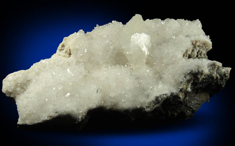 | Description: | Lustrous translucent colorless heulandite crystals in a 17 mm aggregate of parallel crystals on lustrous transparent quartz crystals to 3 mm lining one face of greenish basalt. Collected in 2000 |