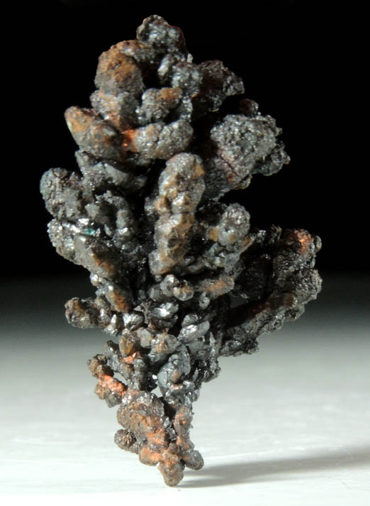 | Description: | Arborescent formation of metallic native copper crystals (naturally occurring copper crystals) to 3 mm with overgrowth of black tenorite microcrystals. |