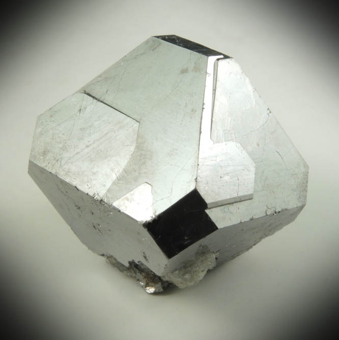 | Description: | Lustrous silver-metallic carrollite crystal with no matrix attached. The carrollite crystal is octahedral form with cubic corner faces. Collected in 2017 |