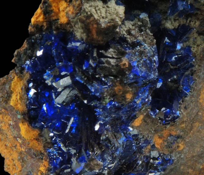 | Description: | Lustrous transparent blue bladed azurite crystals lining small cavities in limonite gossan from the area of the mine known as the Azurite Pit. The azurite crystals look beautiful when viewed under magnification. Collected February 5, 1998 |