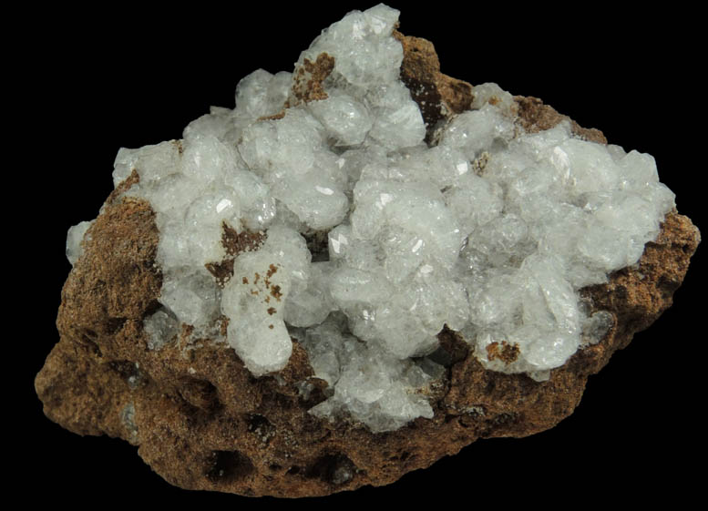 | Description: | Lustrous colorless transparent chabazite crystals on brown earthy matrix. The chabazite crystals exhibit classic pseudo-dipyramidal phacolite habit caused by repeated twinning. Ex. A. Stevenson (1916-2007), originally acquired in 1972 |