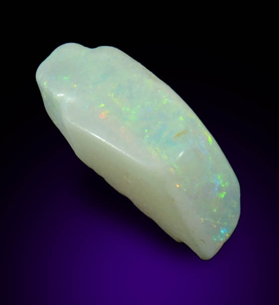 | Description: | Small fragment of milky opal with green to orange play of color (internal fire). The surfaces have been partially polished to highlight the internal colors. Collected ca. 1970 |