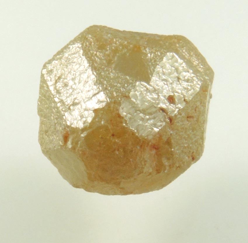 Description:Lustrous translucent yellow-gray rough uncut diamond with textured surfaces composed of many small crystal faces. The diamond crystal is textbook crystal that is a combination of cubic, octahedral and dodecahedral crystal faces.