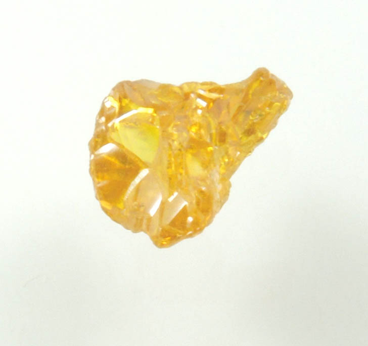 | Description: | Unusual natural rough, uncut diamond with fancy intense yellow color and cavernous crystal faces (cubic form with depressed triangular faces resulting in prominent edges). Under 20x the outer edges exhibit minor abrasions due to alluvial wear. |