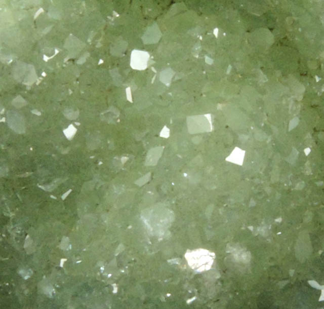 | Description: | Sparkling cluster of lustrous transparent colorless apophyllite crystals to 1.5 mm almost completely covering spherical formations to 15 mm diameter of translucent green prehnite crystals. Collected January 1995.. |