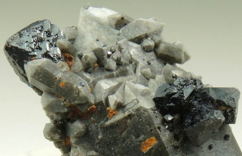 | Description: | Doubly terminated 38 mm quartz crystal with black-metallic brookite crystals to 5 mm. The quartz crystal is gray color caused by impurities in the outer layers, the core of the quartz is smoky. Many brookite crystals are visible under 20x magnification. Ex. Clyde Hardin |