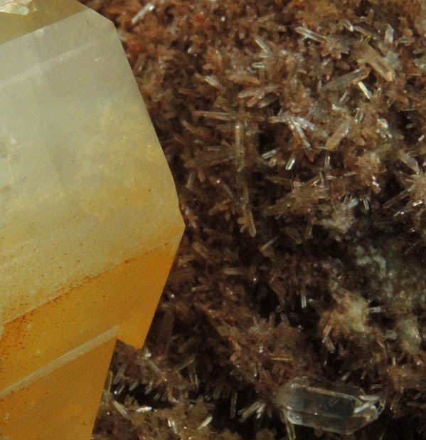 | Description: | Doubly terminated 36 mm lustrous transparent colorless quartz crystal on brown matrix covered with smaller limonite-stained quartz crystals to 5 mm. One of the best quartz specimens I've seen from this one-time find. Collected ca. 1992 |