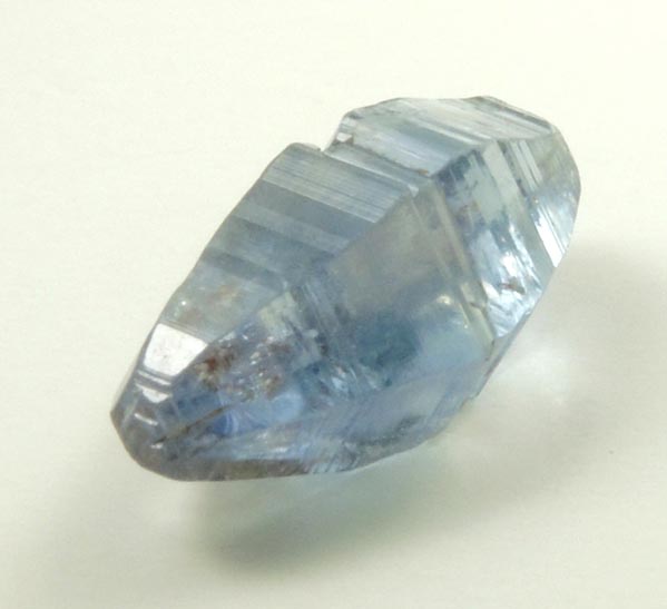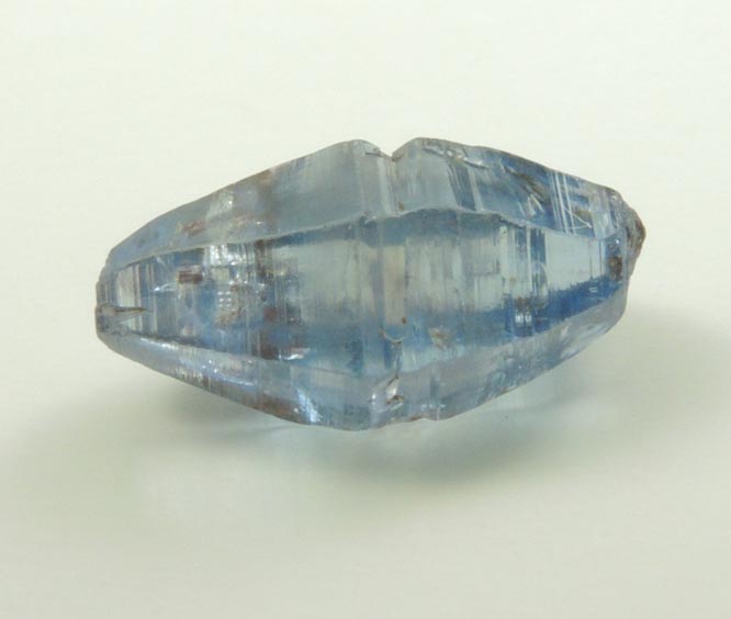 | Description: | Lustrous transparent blue sapphire crystal, the blue gem variety of the mineral corundum, with hexagonal di-pyramidal form composed of striated crystal faces, and stepped basal pinacoid termination on both ends. The sapphire is unusually transparent Collected ca. 1985. Weight: 2.54 carats |