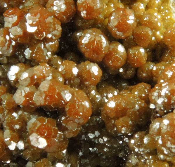 | Description: | Lustrous translucent greenish-brown vanadinite crystals over brown matrix. The vanadinite crystals are equant hexagonal form on small spherical aggregates to 3 mm diameter (unusual). Originally acquired in January 1995 |